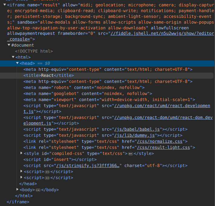resultRef.current!.contentDocument!.head.appendChild(script);