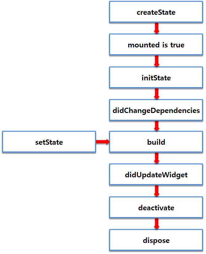 didChangeDependencies : State의 의존성이 변경되었을 때 호출