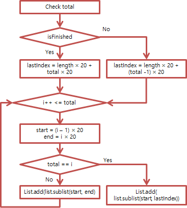 그리고 항상 리스트가 20개 단위로 떨어지지 않기 때문에